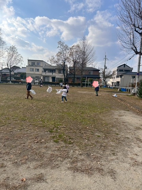 5日の最初の日はみんなで正月遊びをしました♪福笑いや、たこあげづくりをし、昼からは公園にでかけて凧揚げをしています☆